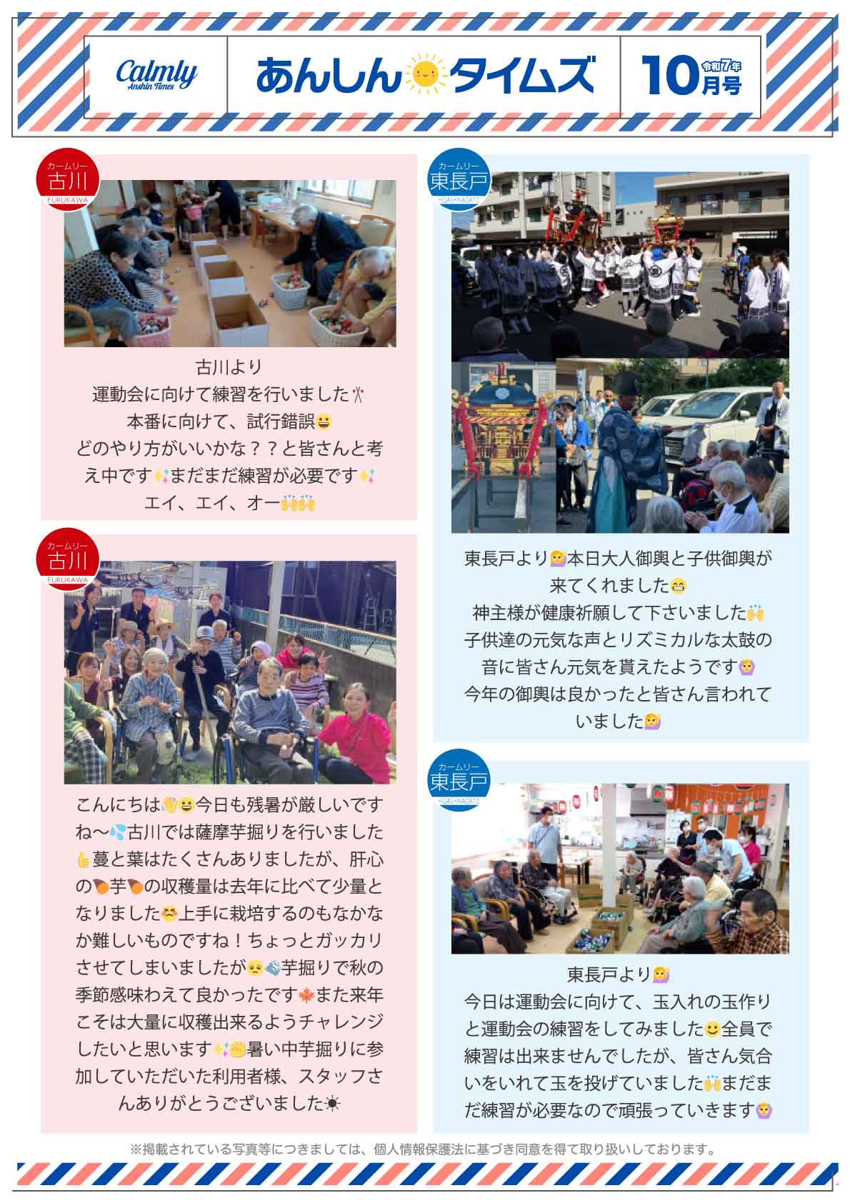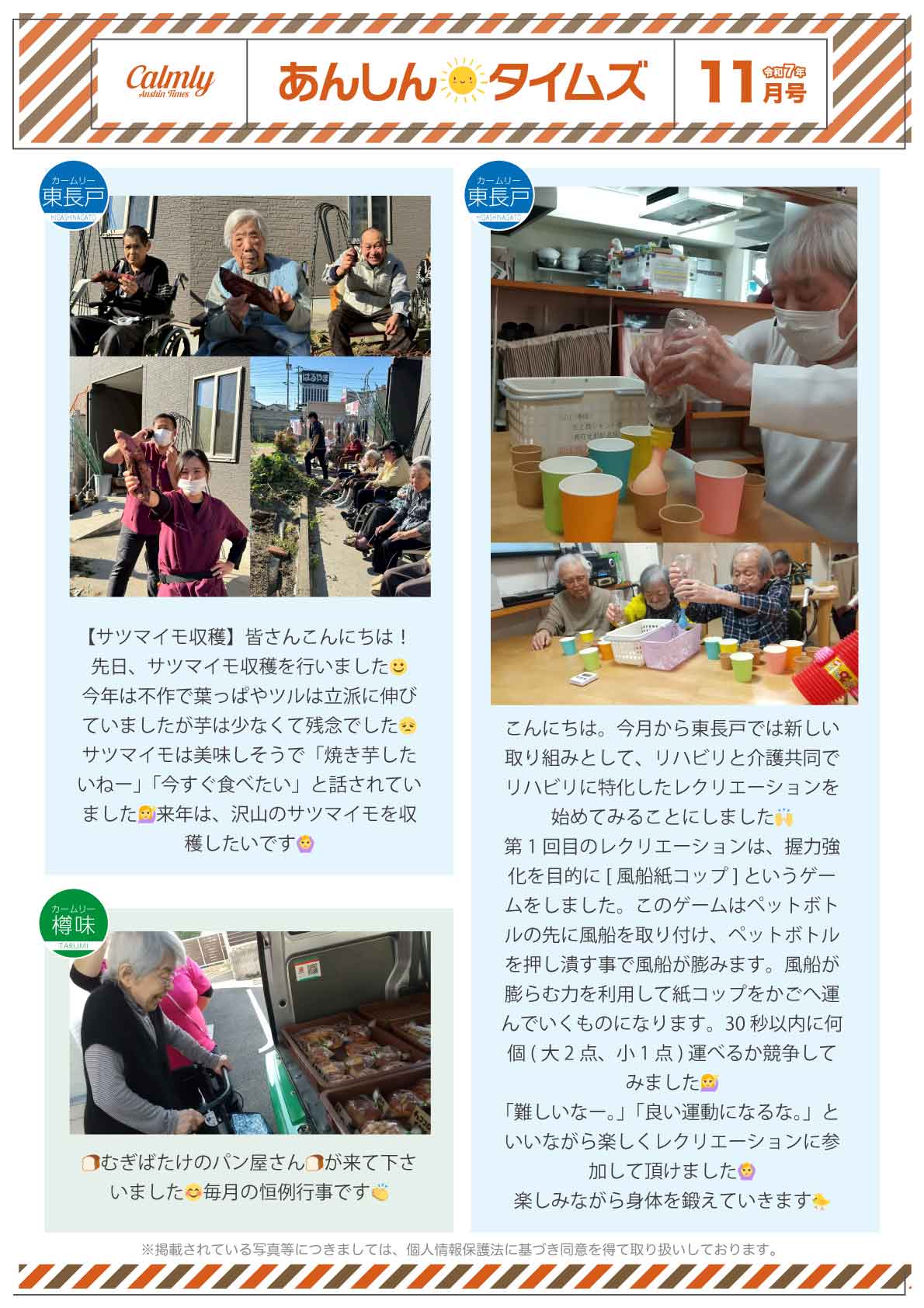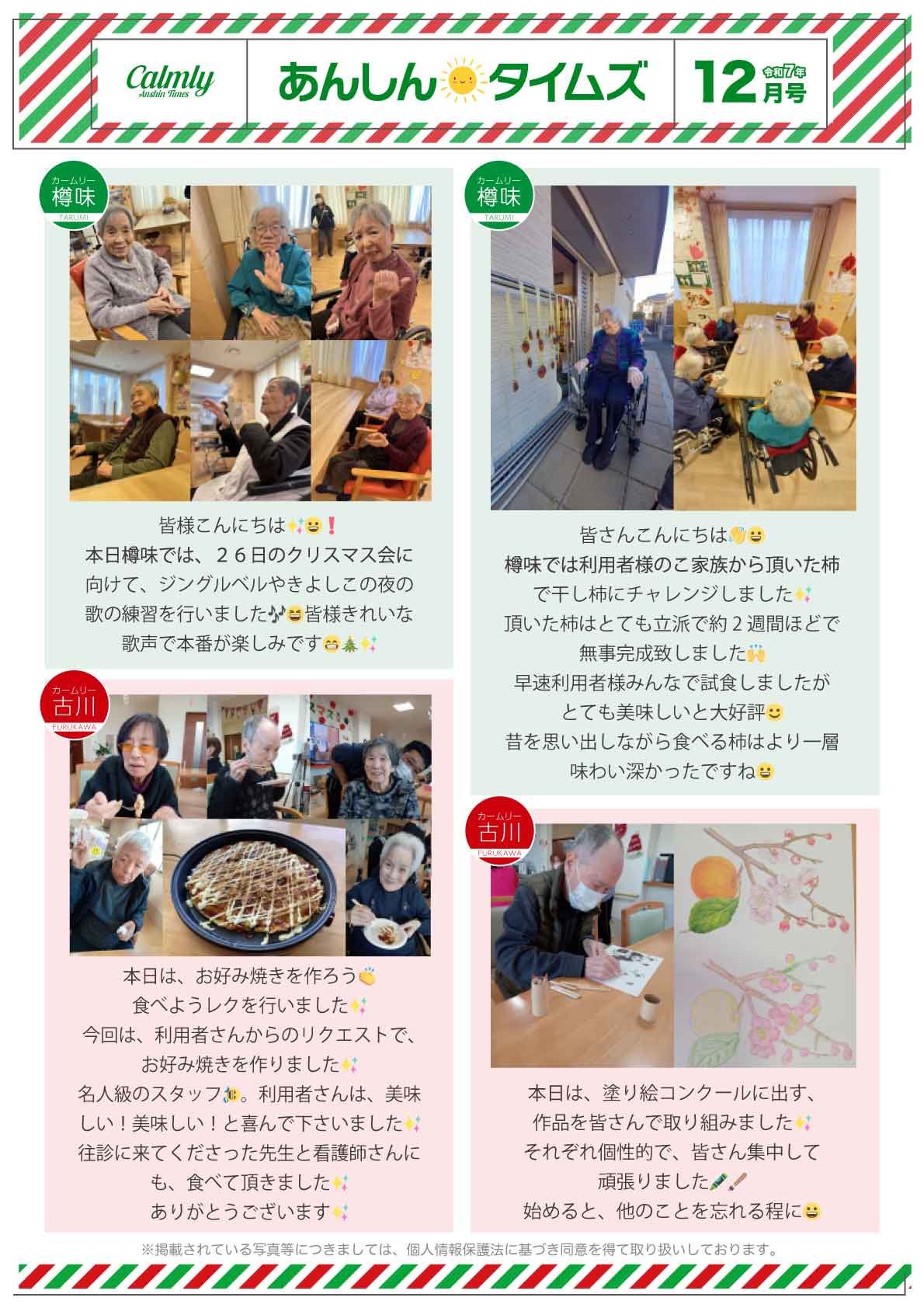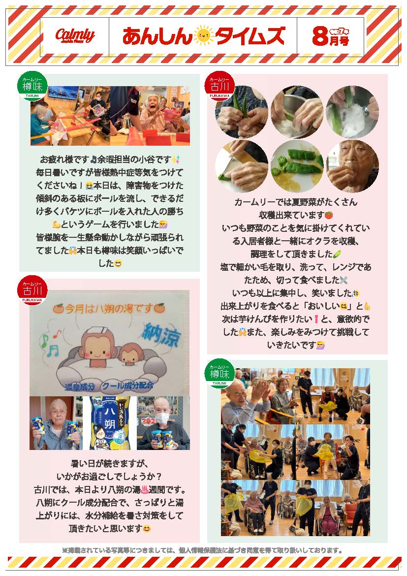 また、イベント等も定期的に行いながら日々のご様子を掲載させて頂いている「カームリー新聞」も毎月発行し好評を頂いています。